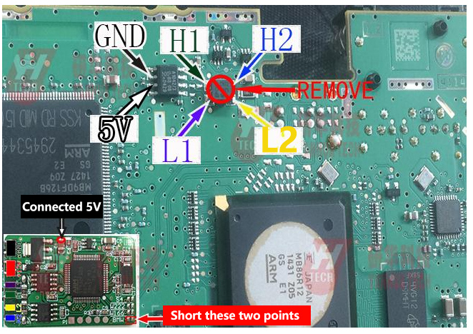 2. Old style W166 short circuit to GND New style W222 short circuit to GND Black wire connect to plug 1