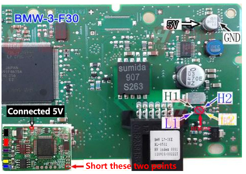 NOTlCE! Please connect the 2 BMW dot together(short circuit) BEFOR connect to car!